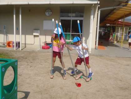 次のチャレンジ 公開日 2023/10/24 更新日 2023/10/24 園の様子 運動会でチャレンジをしましたが、新たなチャレンジに取り組んでいるあお組です。竹馬に乗りたい!という気持ちが大きくなり、乗ろうとしているけれど、「難しい」と言っている友達を支えたり、友達と一緒にチャレンジしたりしています。「やってみたい」「できるようになりたい」という気持ちが大きいことが、たくさん子どもたちの心に出てきてほしいと思います。 いいね(0)