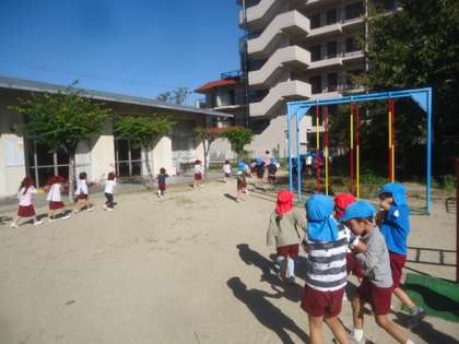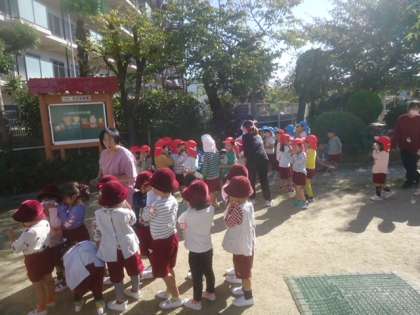 火災を想定した避難訓練を行いました。もも組は1番上手に逃げてくることができました。