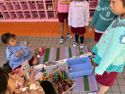 もも組やあか組にチケットを渡して、「チケットを持ってあお組に来たら、ミカンもらえますよ」と伝えてくれました。