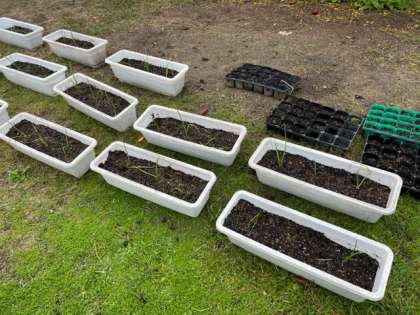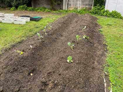 畑にブロッコリーやプランターに玉ねぎなどをあか、もも組のこどもたち植え、水やりをしています。進級した春に大きくなっていることを楽しみにして、生長を楽しみにしていきたいです。