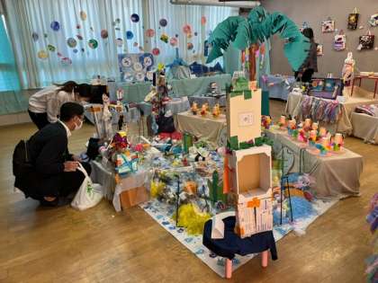 それぞれの保育室で、じっくりと見てくださる保護者の方がおられて、子どもたちと一緒に考えて作ってきた過程を担任も、熱い思いで見てくださる方に伝えていました。