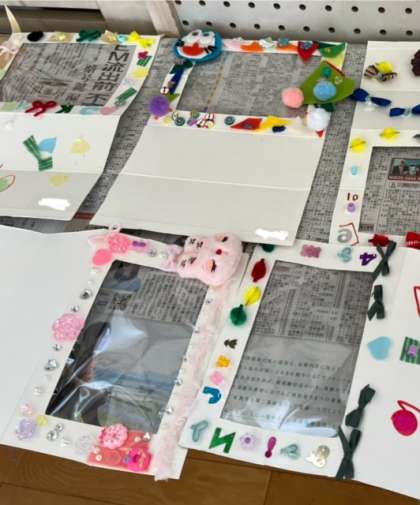 親子製作としてフォトフレームを作ることにして、事前に貼りたいものがあれば持ってきてほしいことを伝えていました。