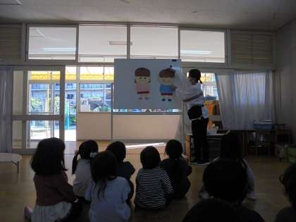 あか組の子どもたちに「かぜのよぼう」について保健指導を行いました。