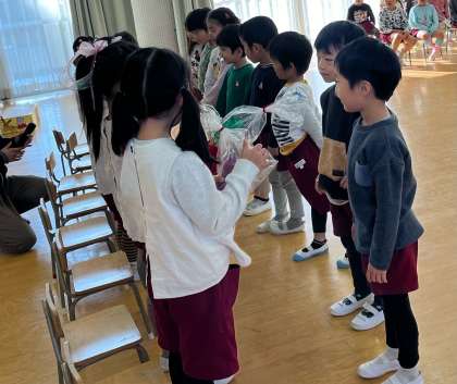 楽しみに待っていた誕生会、しっかりと自己紹介をして、おうちの方からたくさん褒めていただきました。いろいろなところで、子どもたちは頑張っていますね。