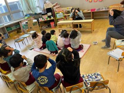 地域のお話の会クリークのみなさんが幼稚園に来て、お話をしてくださいました。