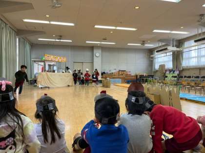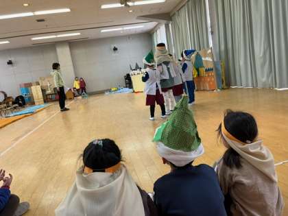 昨日、みんなで劇ごっこを見合いっこした後、話がよく分かるように考えて、修正しながらしてみました。