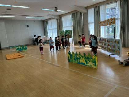 生活発表会の劇遊びで、違う役もやってみたいということで、交代して楽しみました。やはり大好きな役のままがいいという子もいて、それぞれがなりきって遊びました。