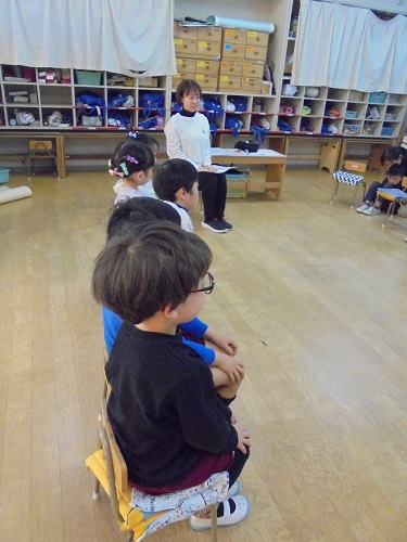 指導後のあか組を覗いてみると、養護教諭の姿を見た途端に話を思い出したようで、姿勢を正す姿が見られました。