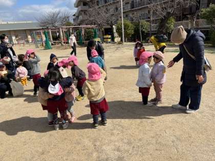 今回もたくさんの未就園児の皆さんが遊びにきてくれました。もも組の子どもたちも一緒に遊んで、自分たちがお兄さんお姉さんになったことを感じて、一緒に遊んでいました。子どもたち同士の関わりは子どもたちの成長につながりますね。
