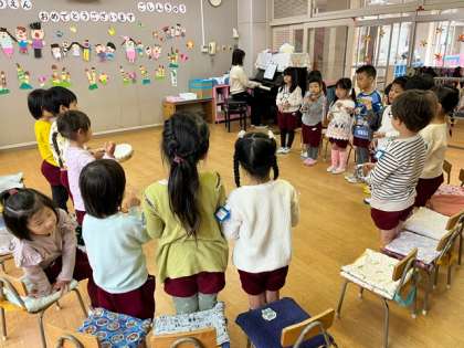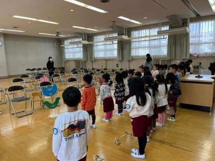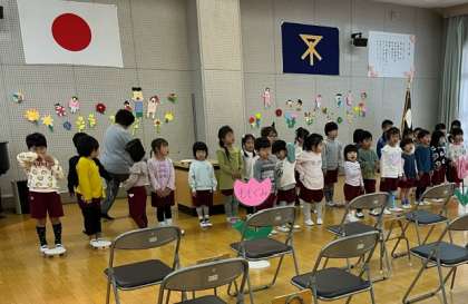 入園式を明日に迎え、あお組とあか組がお祝いの言葉と歌のリハーサルをしました。新しい友達が幼稚園に来てくれることを楽しみにしています。