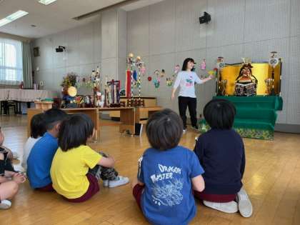 あお組が五月人形を飾ってくれました。ひな人形の段飾りを覚えていて、大事に飾っていました。