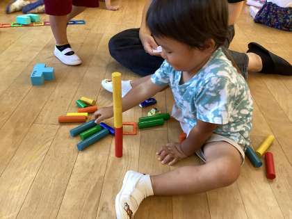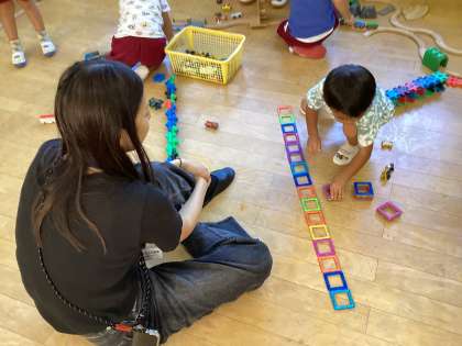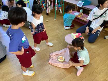未就園児の子どもたちがたくさん遊びに来てくれました。もも組の子どもたちと一緒に遊んだり、もも組がお兄さんお姉さんのようになって知らせてくれたりしていました。半年間の成長が嬉しくなりました。