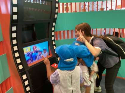 午後からもシャボン玉の中に入ったりシャボン玉をしたりして、いろいろ試して遊びました。絵をかいて動かしたり、写真を2枚撮って動画風に見える様子を楽しんだり笑い声がたくさん聞こえていました。
