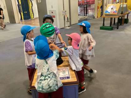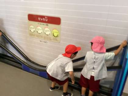 4・5階をつなぐアスレチックを友達と一緒に挑戦したり、いろいろな不思議なことを実体験で楽しんだりしながら園外保育をおもいきり楽しみ、「帰りたくない」「もっと遊びたい」と言いながら、キッズプラザ大阪を後にしました。そして、くたくたになりながらも頑張って電車に乗って帰ってきました。