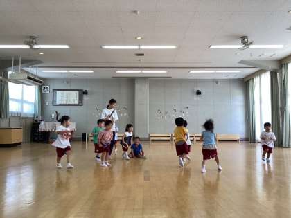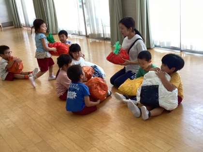 ハンドル握って、バスを運転して出発!と運転手さんが出かけていきました。信号で停まったりバックしたり、急ブレーキをかけたり、高速道路を走ったりして楽しくドライブに行きました。運転手さんはずっとニコニコ。公園について、お腹が空いたので、みんなでお弁当を食べることにしました。大きなお弁当箱からおにぎりやトマトを取り出して、ぱくぱく食べました。「美味しい」とまたニコニコ。元気になった運転手さんはまた出かけていきました。