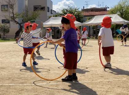 虫のフェスティバルがどんどん楽しくなってきて、フープも上手に使って遊べるようになってきました。宇宙でのむしむしフェスティバルのダンスは「今日は1番上手にできるよ」「私の方が上手になった」「先生は見てて」と自信をもって踊っています。とてもかわいいので、運動会でしっかりと見てくださいね。