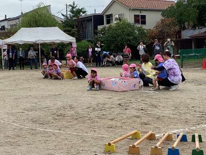 もも組の「げんき100倍ピクニック」では、バスに乗って出発しました。公園で遊んだり、お弁当を食べたりして、げんきいっぱいのダンスも笑顔であふれていました。初めての運動会ですこし恥ずかしそうでしたね。