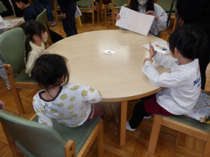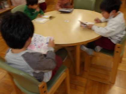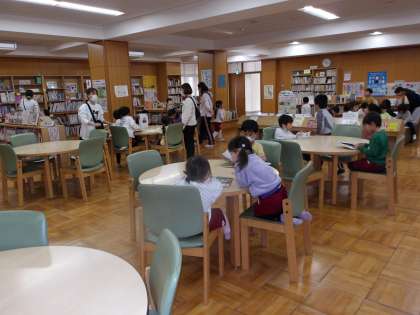 住吉小学校のブックハウスに遊びに行かせていただきました。たくさんの絵本やいろいろな種類の本があり、子どもたちはあちらこちらに行って、好きな絵本を見ていました。同じような棚が並んでいるにもかかわらず、元のところに戻していて、びっくりしました。そのあとは、5年生のお兄さんお姉さんが読み聞かせに来てくれました。