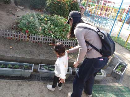 未就園のお友達が遊びに来てくれました。ぽかぽかで暖かかったので、幼稚園の広い園庭で三輪車やボール遊びなどたくさん遊んでくれていました。お花の苗植えを一緒にして水やりもしてくれました。