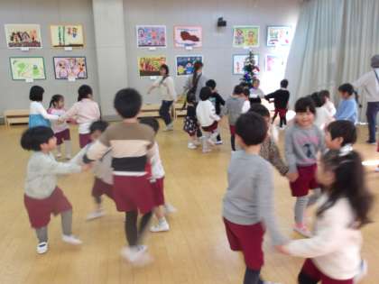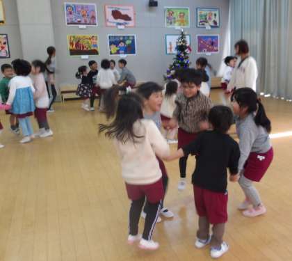 3クラスそろっていたので、みんなで『ジングルベル』のダンスをしました。友達と一緒に踊ると自然と笑顔があふれますね。