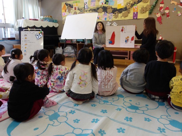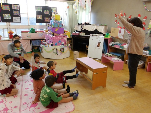 住吉図書館の絵本ボランティアの方が来てくださり、各クラスで絵本を読んでくださいました。大型絵本やパネルシアター、エプロンシアターなど、季節に合った内容のお話を選んでくださり、楽しい時間を過ごすことができました。ありがとうございました。