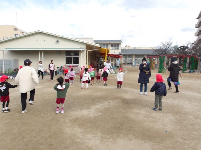 あそぼうデーに未就園児のお友達が遊びに来てくれました。風が冷たい日でしたが、元気いっぱい園庭で遊んだり、体操をしたりしました。今年度はあと2回予定しています。また、遊びに来てくださいね。