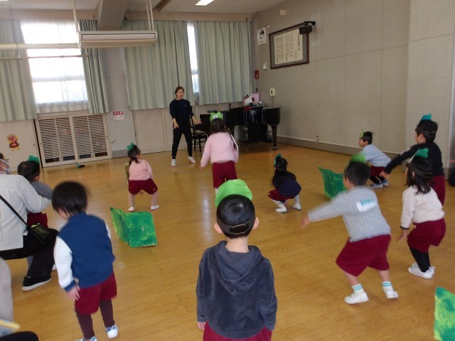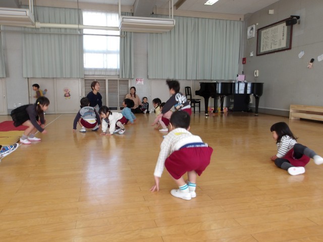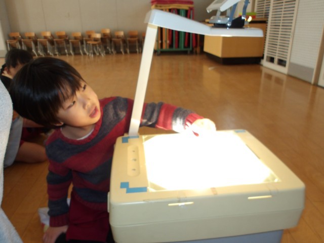 みんなでダンスをしたり、いろいろな動物になったり、スキップしたりして遊んでいます。あお組は機械を使って壁に絵を映してみたりしています。いろいろな表現方法で、遊んでいますので、子どもたちの表現を楽しみながら、生活発表会につなげていきたいと思います。楽しみにしておいてください。