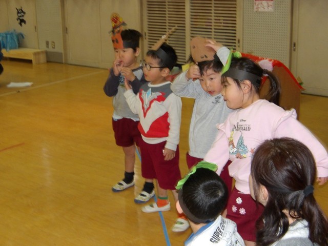 もも組さんは「3時のお茶に来てください」のお話で遊んでいます。みどりのみどりちゃんの家を目指してみんなで歩いたり、ケーキを作ろうとみんなで材料を集めてきたりして楽しんでいます。