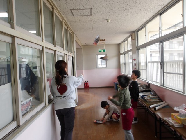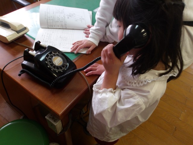 今日も園長室でお弁当を食べたグループがありました。友達から前回の様子を聞いて、楽しみにしてきました。今日はお弁当を食べながら、いろいろな話が盛り上がり、ゆっくり食べることができました。その後は紙飛行機を2階の長い廊下で飛ばしたり、絵をかいたりしました。「私は、ママに電話したいから」と黒電話で電話をかけて、お母さんに話をしていました。