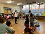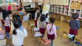 あお組の合奏と歌の予行をしました。あか組、もも組はたくさんの楽器があることにびっ...