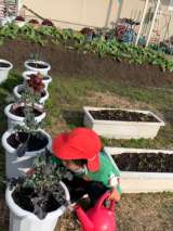自分で育てているブロッコリーを大事そうに見ていました。そおっっと、優しく水をあげ...