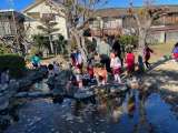 幼稚園のザリガニ池が凍っていることにも気付き、「ガラスみたい」「めっちゃ大きいで...
