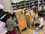 お部屋で初めに作ったぽんたの自動販売機を使って、ごっこ遊びをしたり、遊びに必要な...
