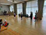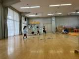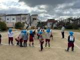 体操、マラソンの後、ドッチボールをしました。ボールを投げることも慣れてきました。
