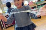 ゴリラのパン屋さんごっこをして遊びました。なわを使って綱渡りごっこをしたり、一本...