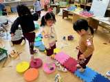 もも組は友達と一緒に遊ぶことが楽しくなってきていて、砂場でたくさんごちそうをつく...