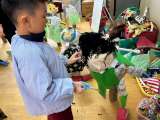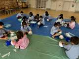 風船に紙を貼り、張子を作ろうと、新聞紙に糊をつけて、どんどんと貼っていきました。...