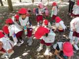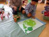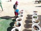 大阪城公園の園外保育で拾ってきたドングリを使って、絵の具がついたドングリの転がっ...
