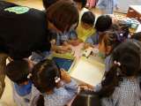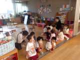住吉区役所の方に、4歳児訪問に来ていただきました。パネルシアターでカレーの歌を歌...