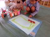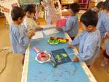 きれいな色のスタンプを押して楽しみました。模様がどんなふうになるかを考えながらス...