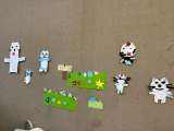 「11ぴきのねこ」ごっこで遊んでいるあか組。大好きになって、貼り絵の製作も上手に...