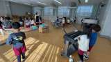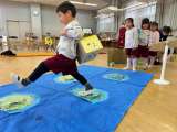 自分たちで道具を運んだり、並べて準備したりしながら17ひきのねこごっこを楽しんで...