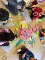 春の壁面飾りをつくろうと菜の花をつくったり、誕生日の友達にプレゼントをつくったり...