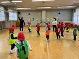 あいにくの雨で、リズム室での活動になりましたが、元気いっぱい、走り回っていました...