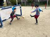 久しぶりのサッカー遊びでしたが、コーチの話をよく聞いて、楽しんでいました。試合形...