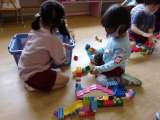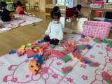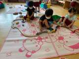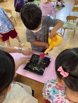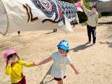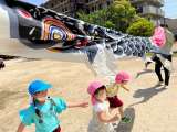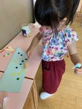 シールをペタペタ貼って、お洒落なこいのぼりができました。楽しくて、「もっとしたい...