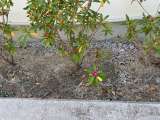 100周年記念で通用門のスロープに植えたヒラドツツジに花芽がついてきました。花が...