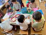 一緒にお弁当を食べることにして、あか組で一緒に食べました。隣同士でおしゃべりしな...