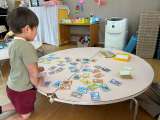 先生に名前を言ってもらいながら、ポケモンのカード取りをしたり、絵合わせパズルをし...