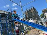 遊具で遊ばせてもらいました。幼稚園よりも大きなジャングルに苦戦しながらも登り、滑...